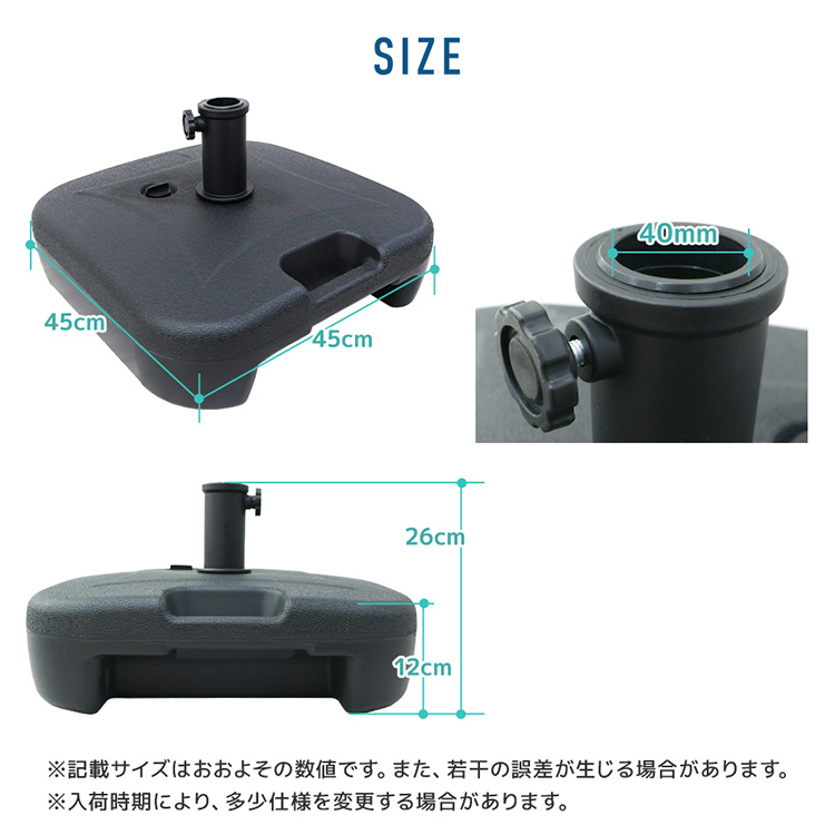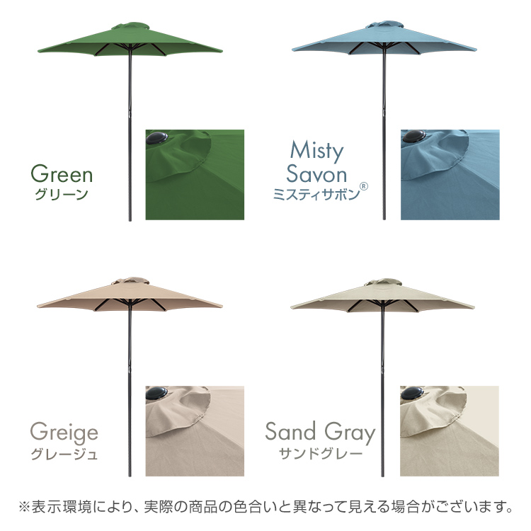 ・風や雨が強い日の使用は危険ですので、ご使用しないでください。パラソルやベースを地面に固定しても突風や瞬間的な豪雨などでパラソルが破損する場合がございます。そのような自然現象による破損につきましては保証の対象外となりますのでご注意ください。