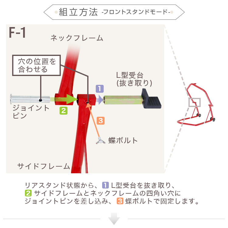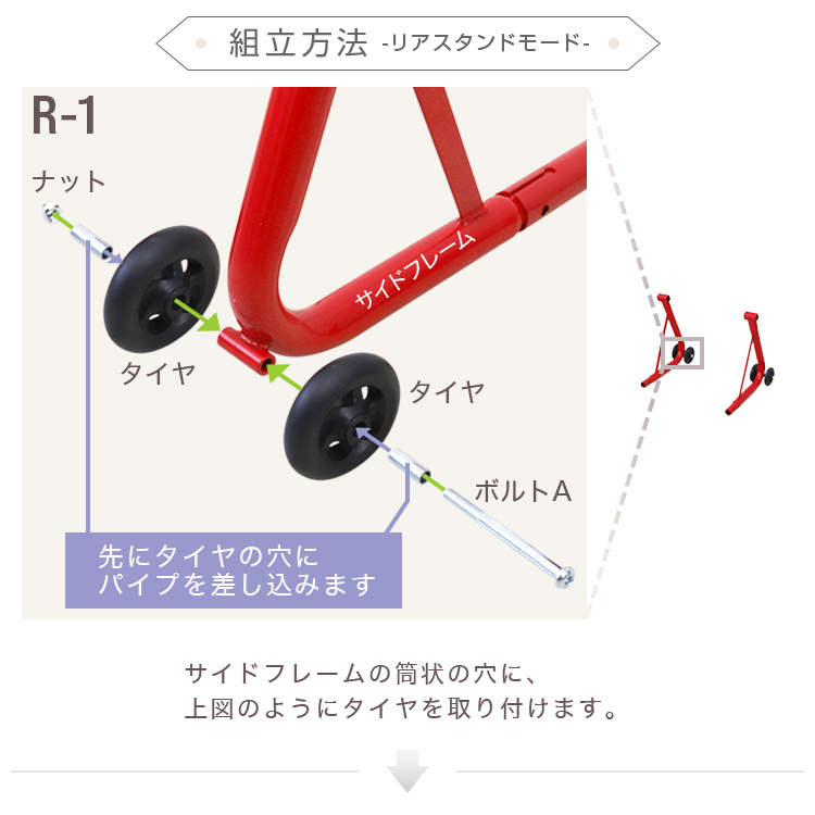 ※スタンドの立て方は「リア→フロント」の順番でお願い致します。