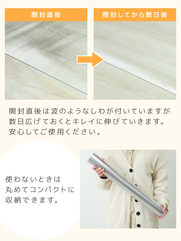 100℃の耐熱加工を施しているので、床暖房の上での使用もできます。