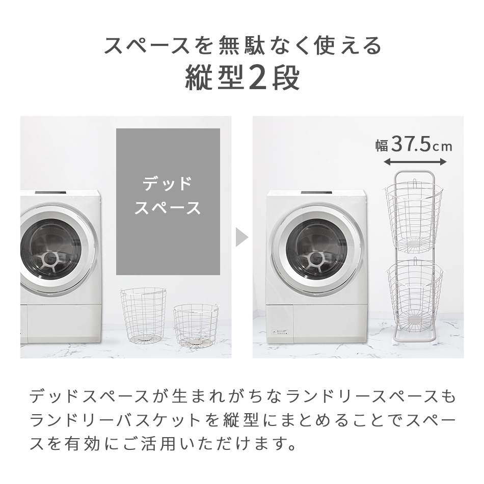 ランドリースペースを無駄なく使える縦置き2段タイプ!