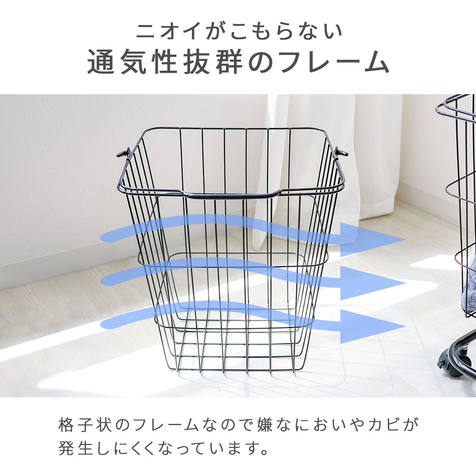 2つのバスケットは取り外しも可能で、持ち手があるのでベランダに運ぶ時なども便利にお使いいただけます。