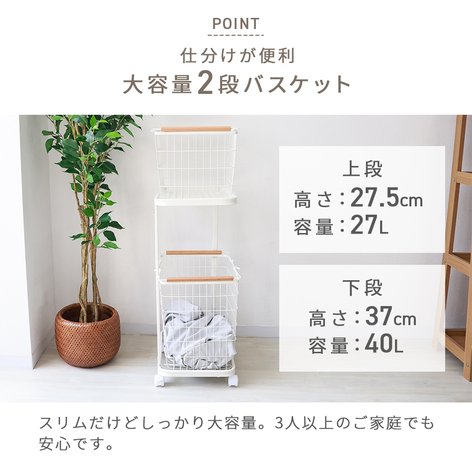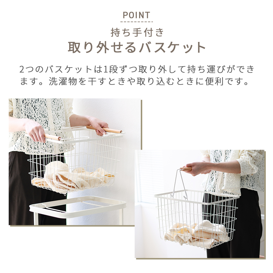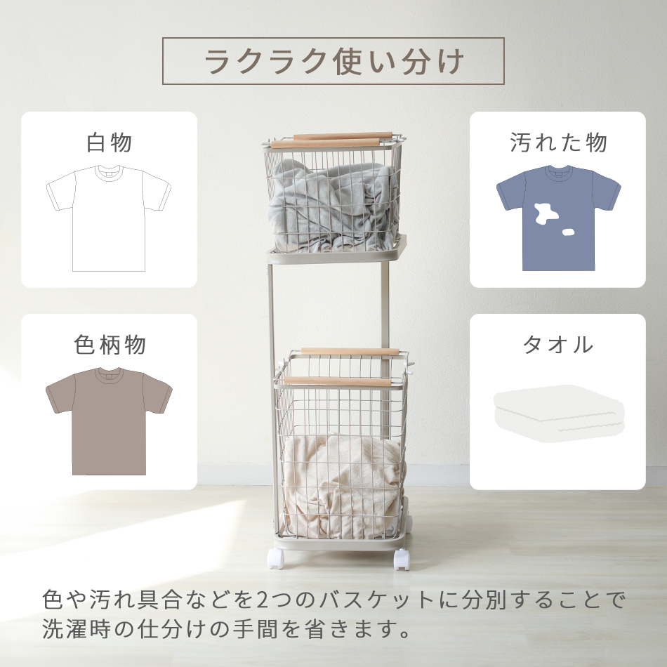 洗濯物を2つのバスケットに分別でき、洗濯時の手間解消に♪