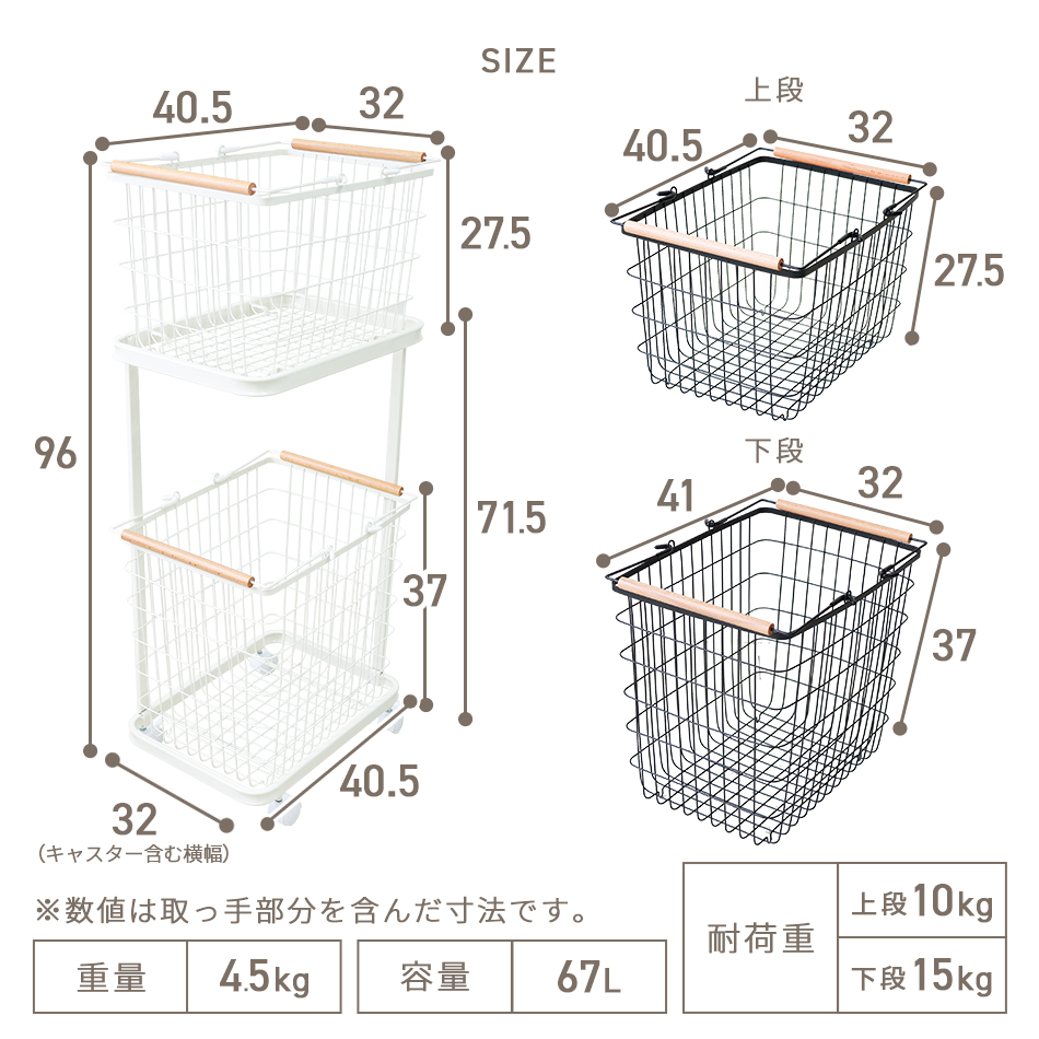 カゴ上段:(約)幅32×奥行40.5×高さ27.5cm