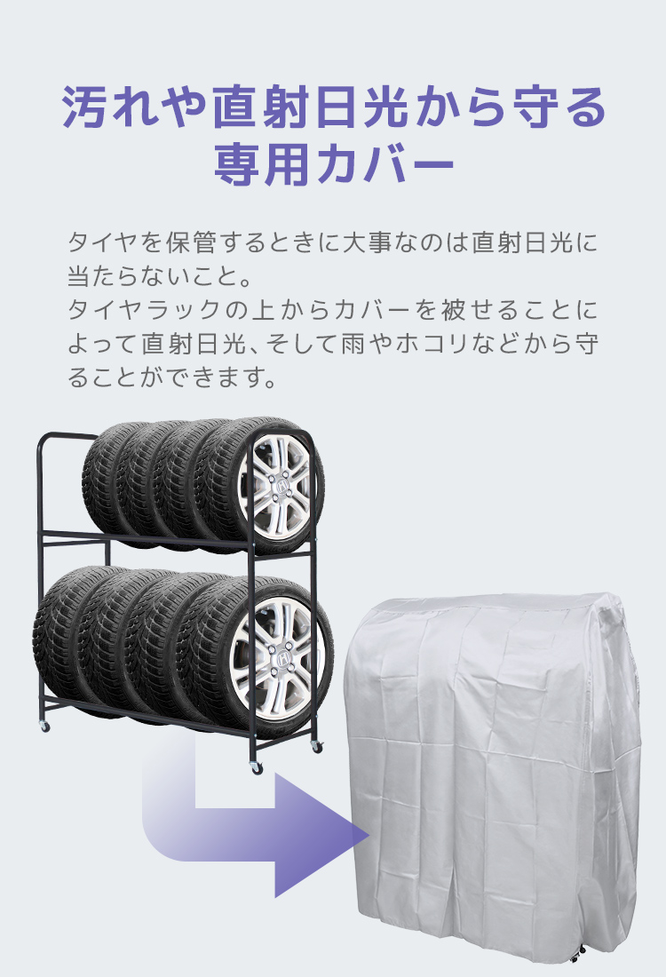 雨・雪、ほこり等からラックごとタイヤを守ります。