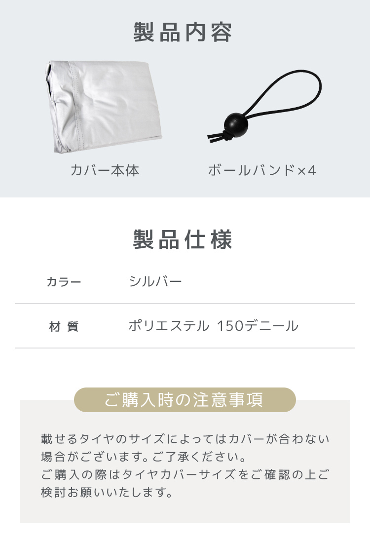 ・載せるタイヤのサイズによってはカバーが合わない場合がございます。ご購入の際はタイヤカバーサイズをご確認の上ご検討お願い致します。