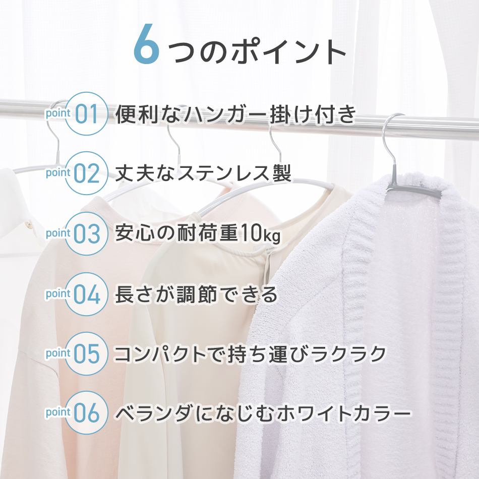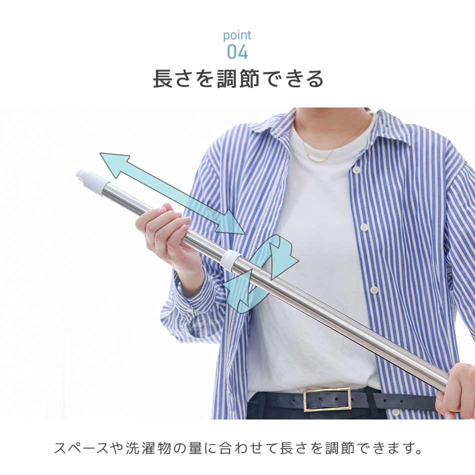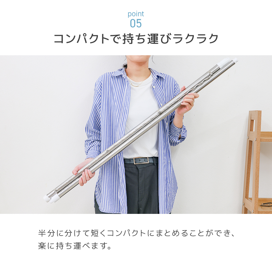 コンパクトで持ち運びに便利な物干し竿です。