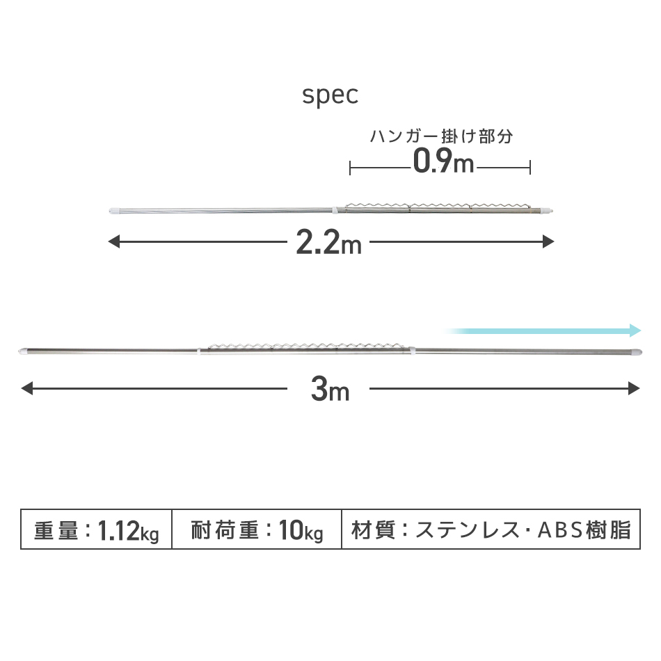 サイズ (約)長さ220〜300cm×直径3cm