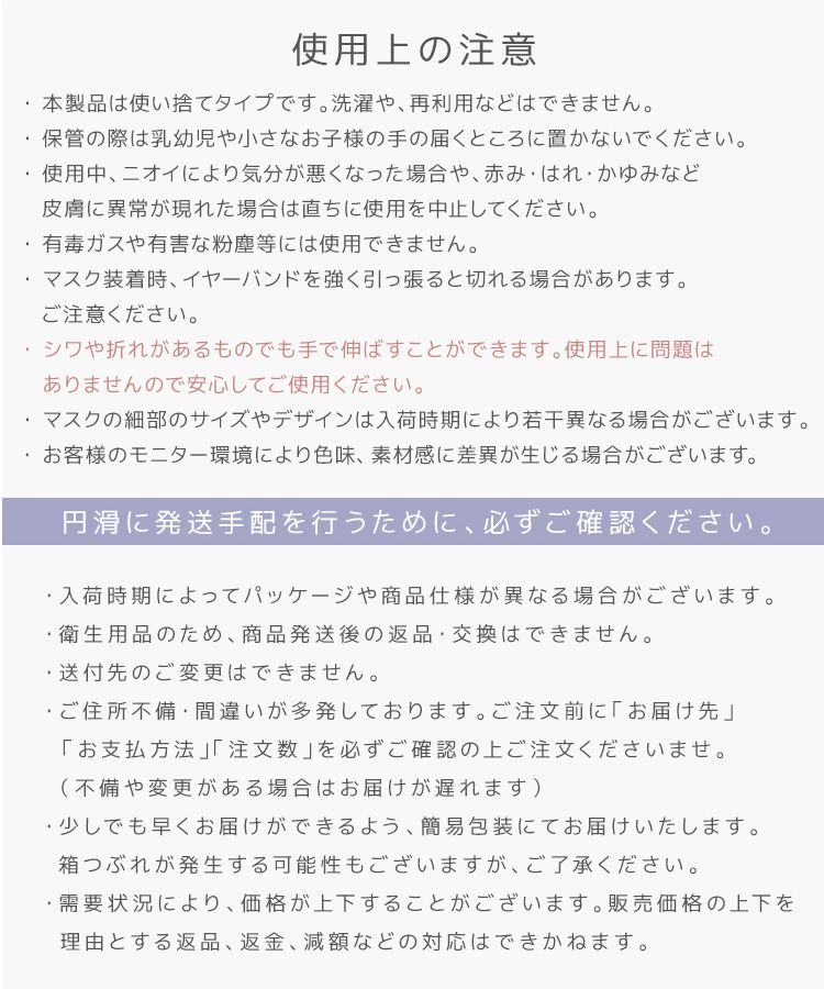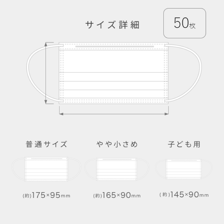 内容:マスク50枚入り ※大きめサイズのみ30枚入り