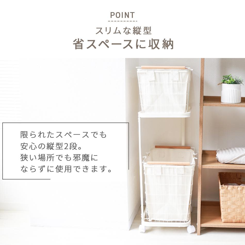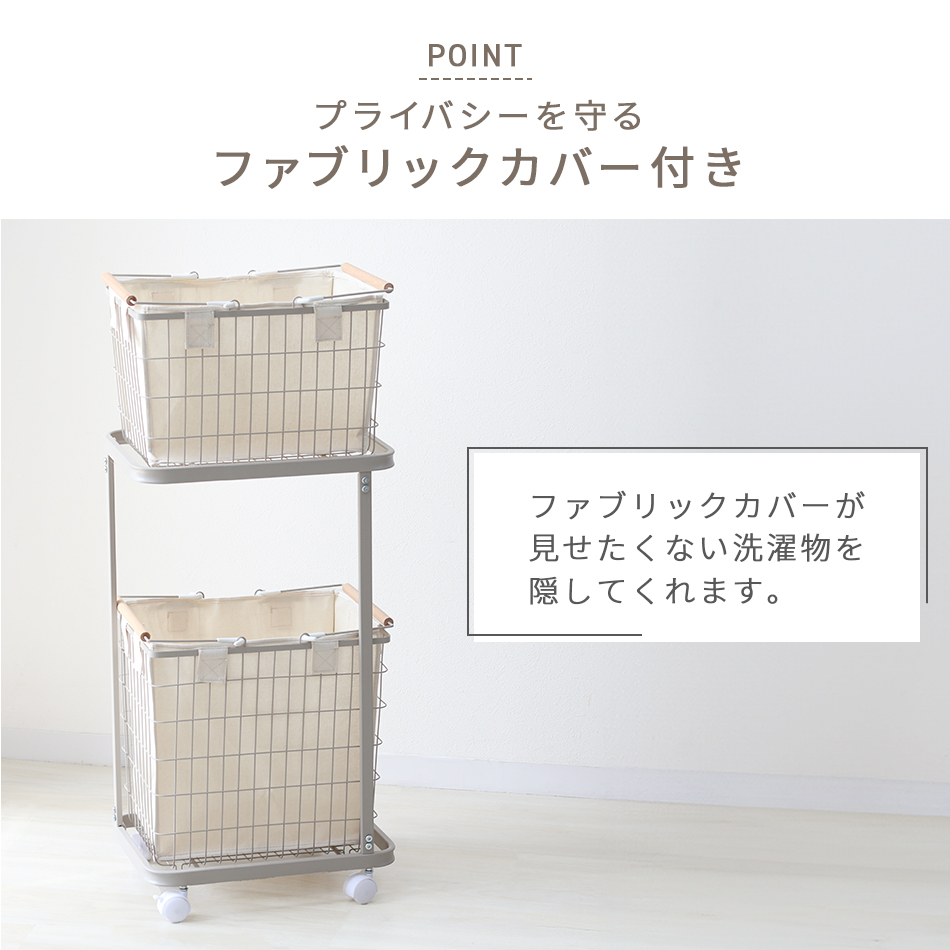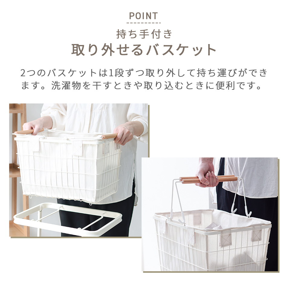 洗濯物を2つのバスケットに分別でき、洗濯時の手間解消に♪