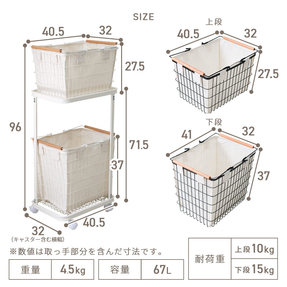 カゴ上段:(約)幅32×奥行40.5×高さ27.5cm
