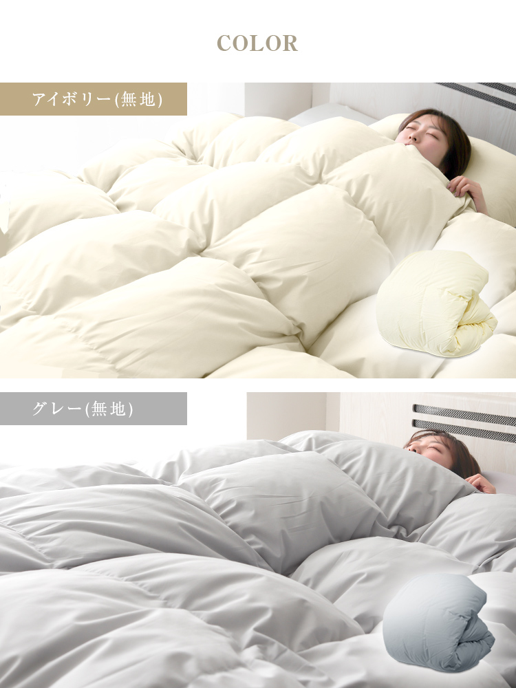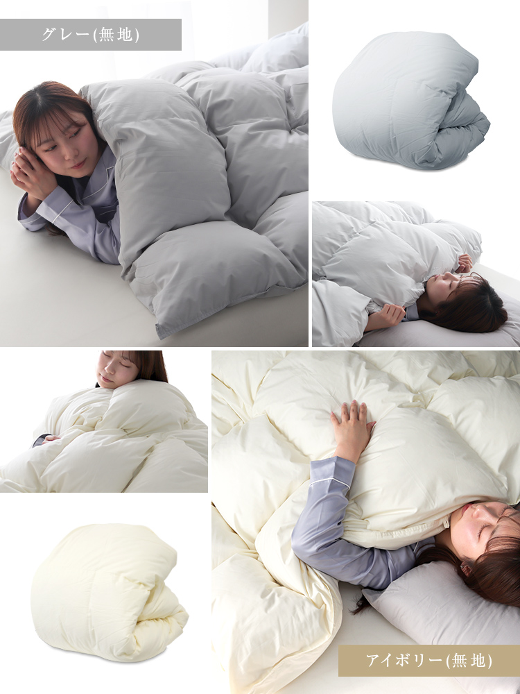 ・羽毛は天然素材のため、無臭ではございません。原毛は洗浄によりほとんど臭いを感じないようにはしておりますが、開梱直後や温度・湿度等の環境等により臭いを感じる場合がございますので、開封直後には風通しの良い場所での十分な陰干し等をお勧めいたします。なお、天然羽毛の臭いのため人体に害はございませんのでご安心ください。