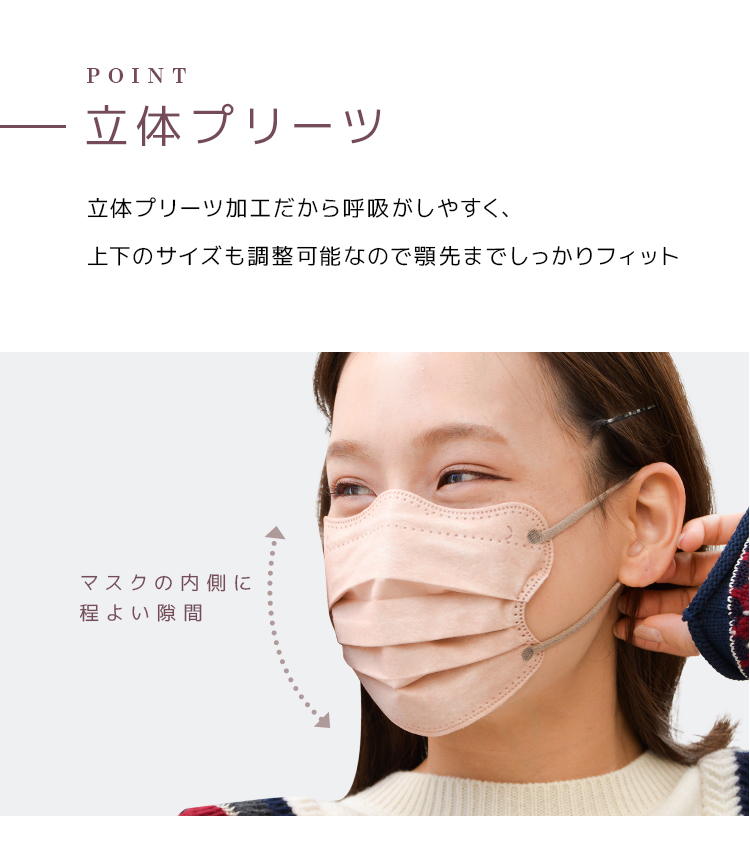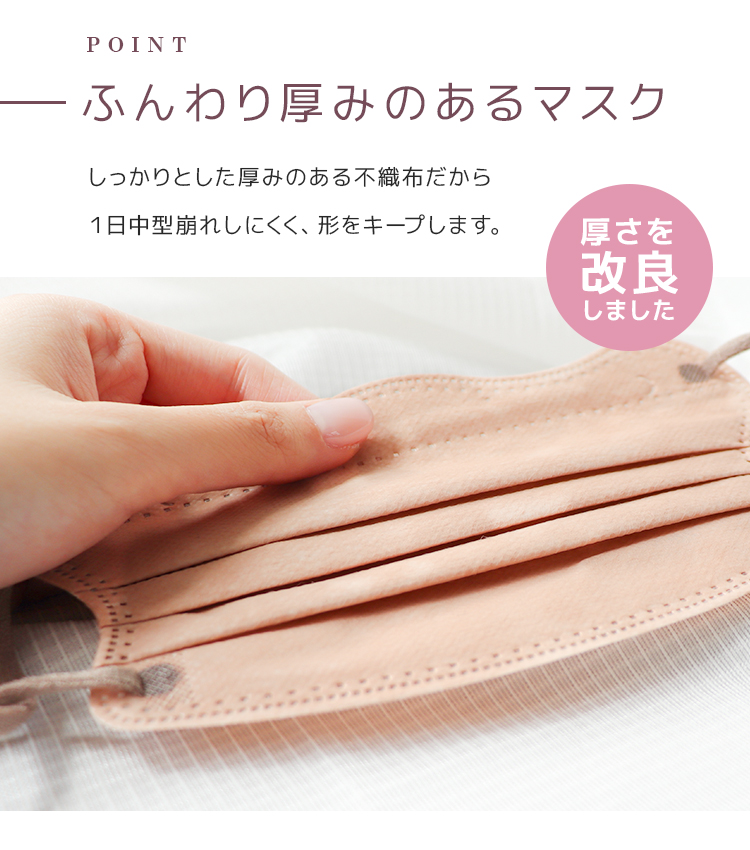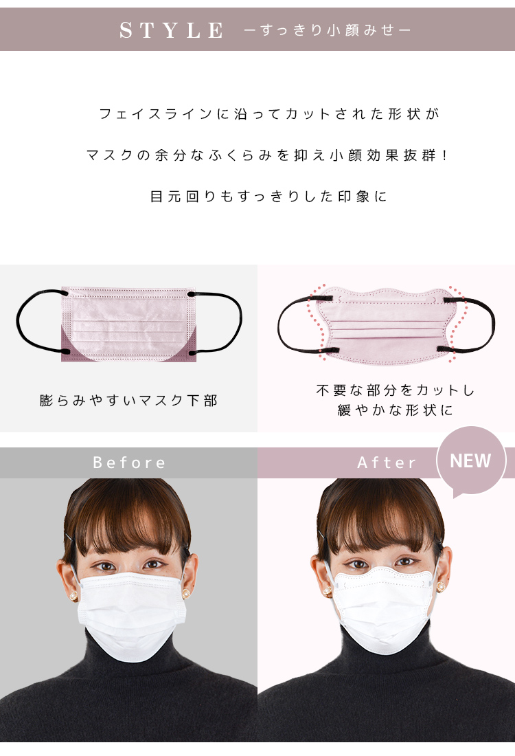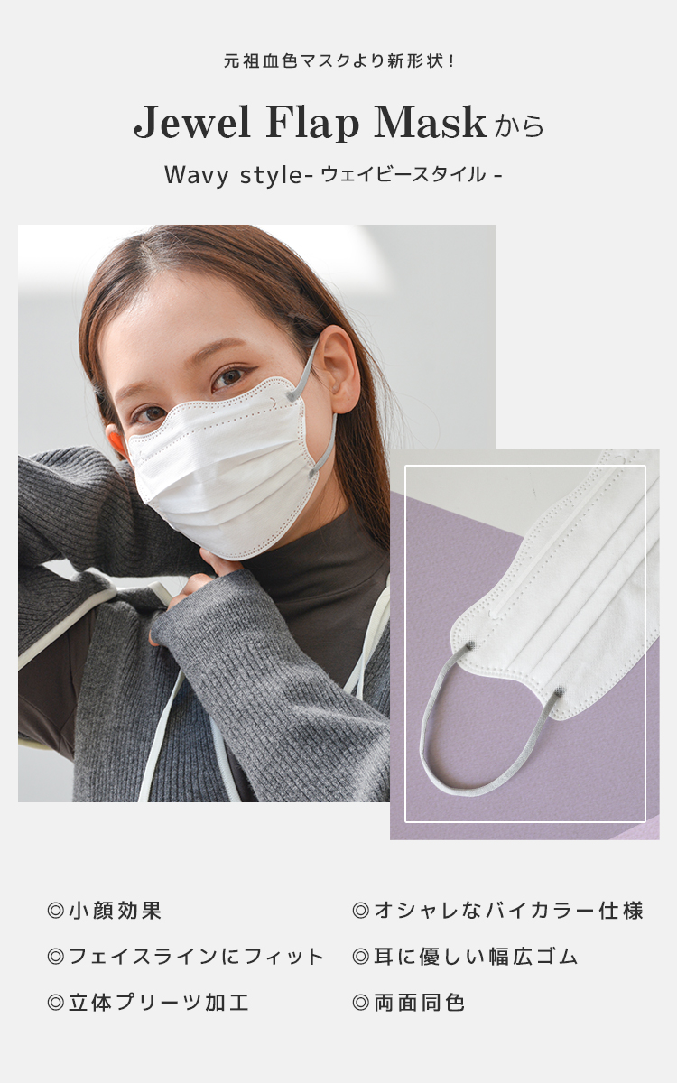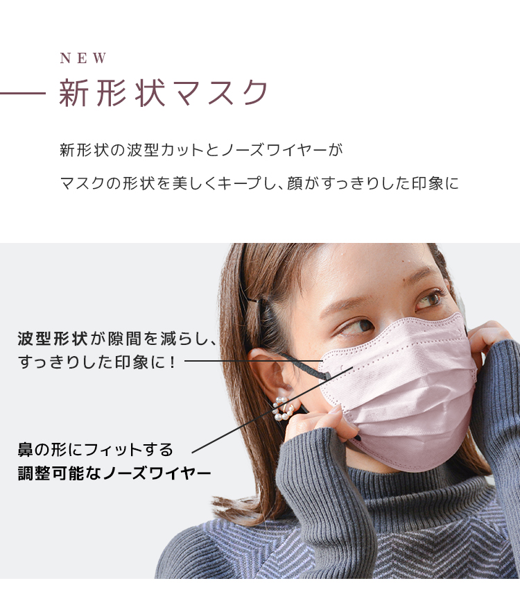新形状の波型カットとノーズワイヤーがマスクの形状を美しくキープ