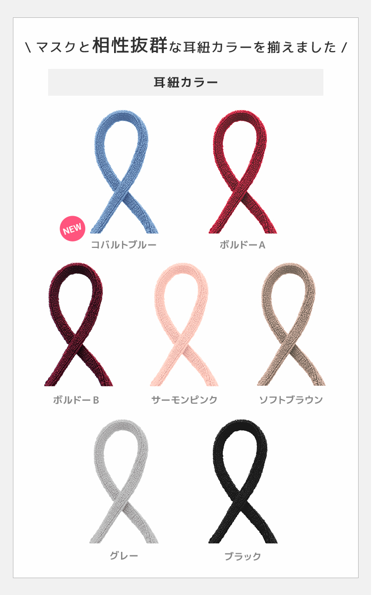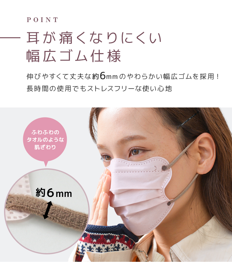 耳が痛くなくなりにくい幅広ゴム仕様。