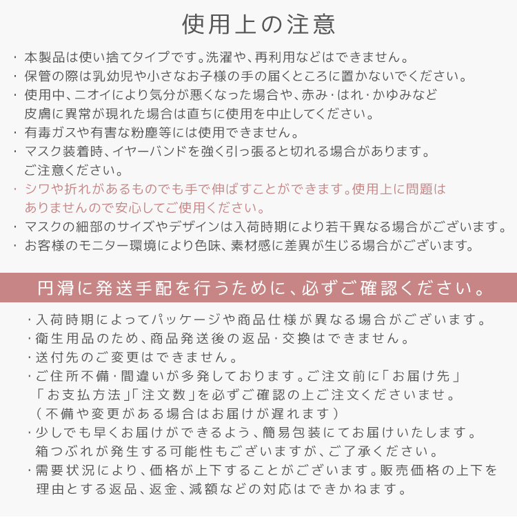 ・本品は使い切りです。洗濯による再使用はできません。使用は1日1枚を目安とし、汚れが気になる場合は取り替えてください。