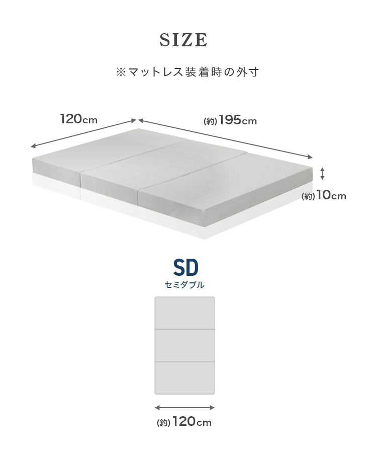 厚み10cm、フラットタイプ、3つ折りタイプ、セミダブルサイズ