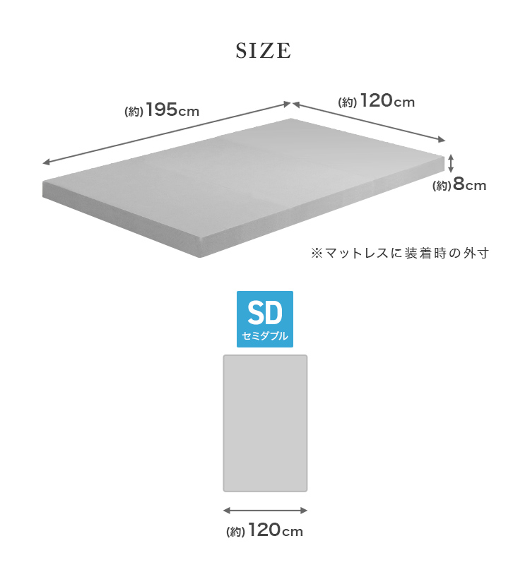 (約)195cm×120cm×8cm(セミダブルサイズ)