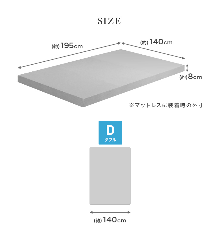 (約)195cm×140cm×8cm(ダブルサイズ)
