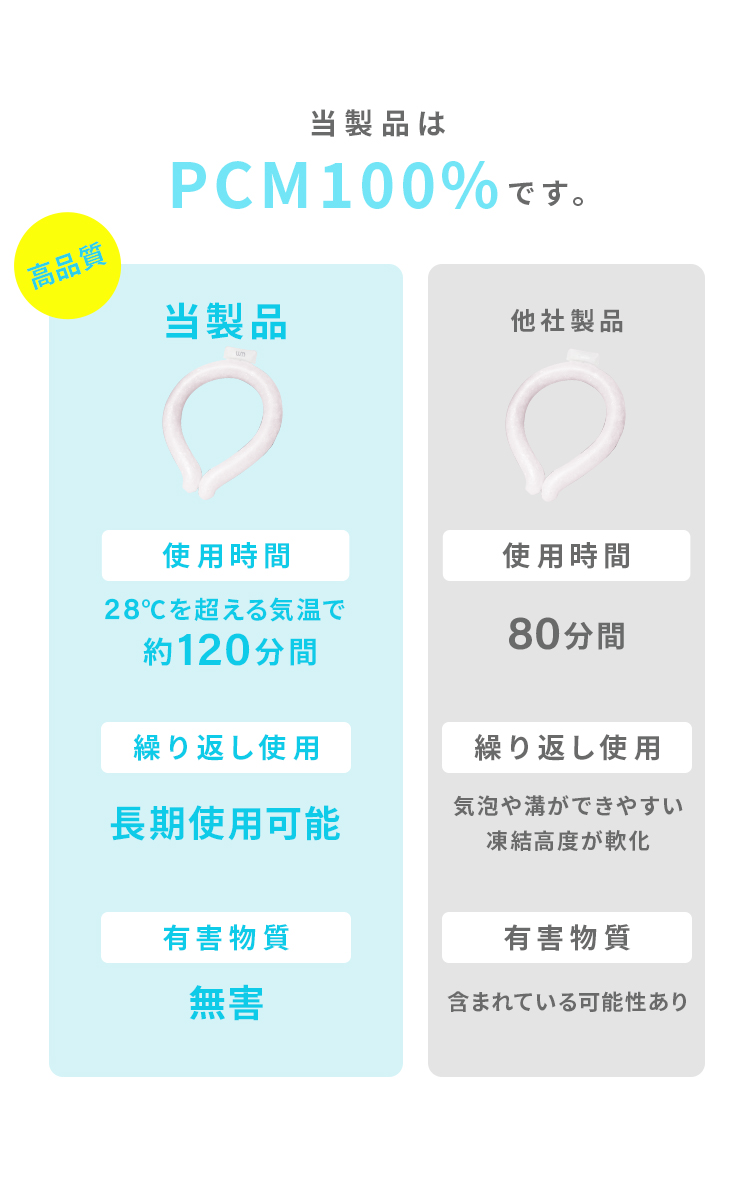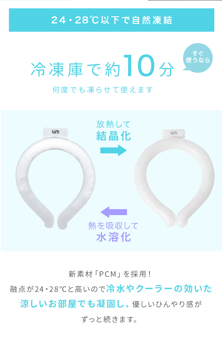 冷たさが長く続く!話題の新素材「PCM」を100%使用。