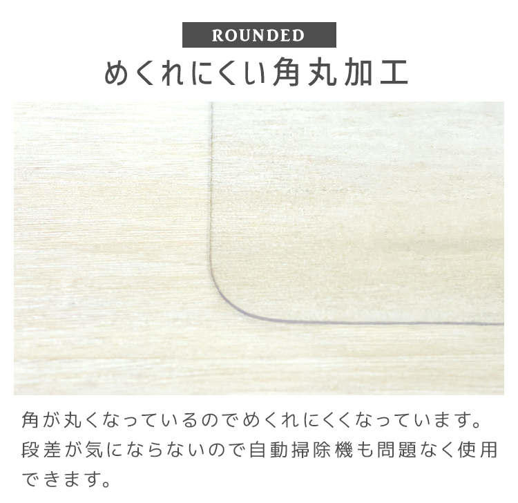 角丸設計でめくれにくく、ロボット掃除機も問題なく使用できます。