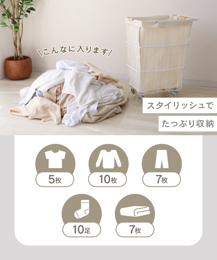 スリムなのに大容量!持ち手付きランドリーバスケットです。