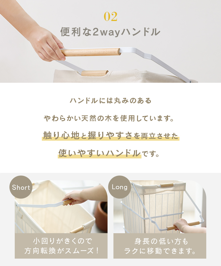 便利な2wayハンドルは、やわらかくて握りやすい天然の木を使用!