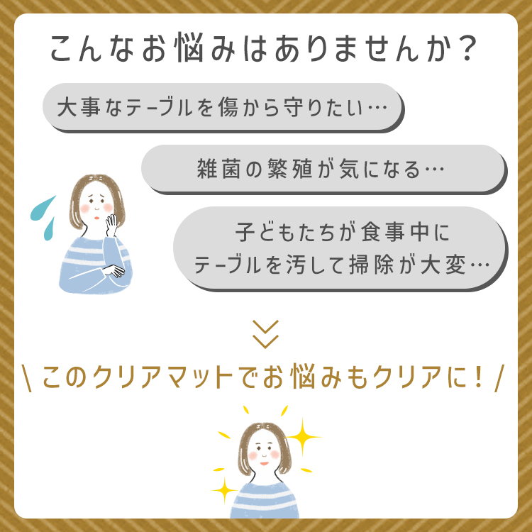 そんなお悩みには、お洗濯不要!汚れやキズから守る、ダイニングテーブルマットがオススメです。
