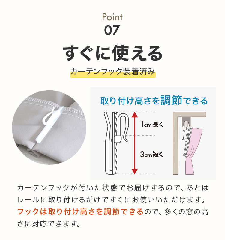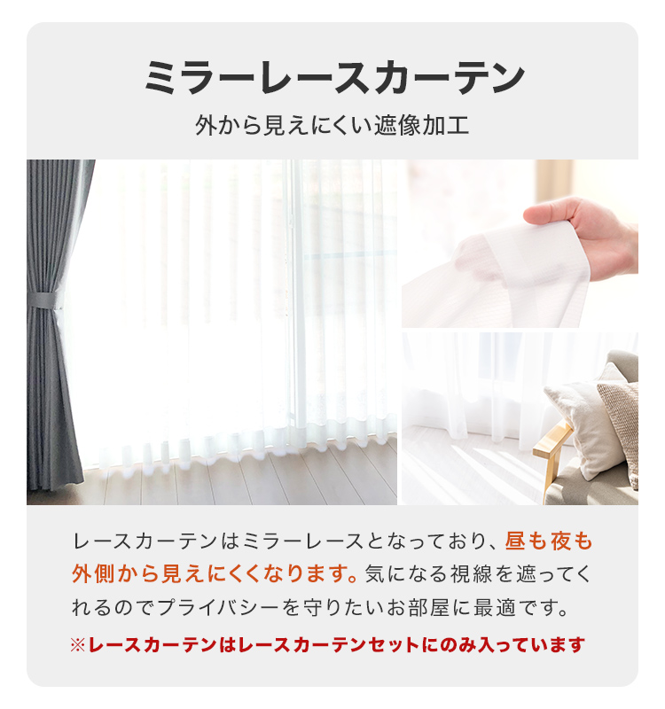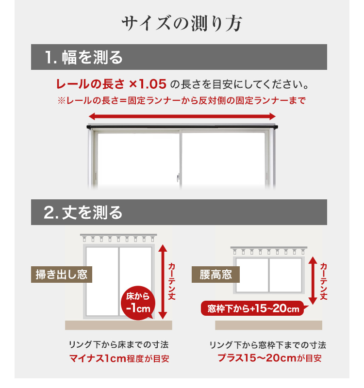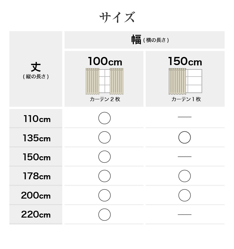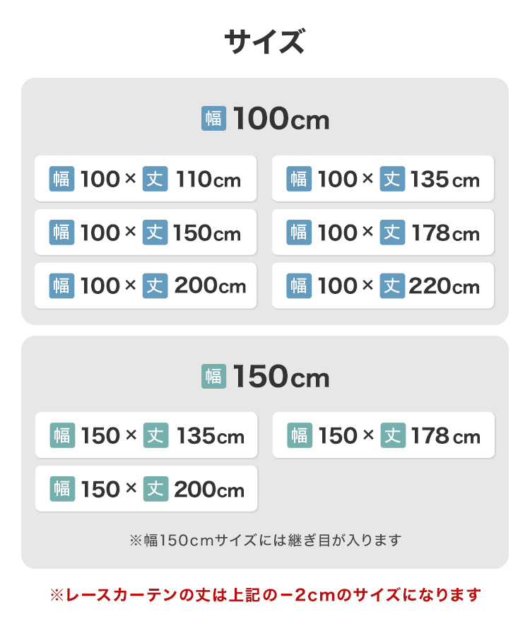 ※レースカーテンの丈は上記の-2cmのサイズになります。
