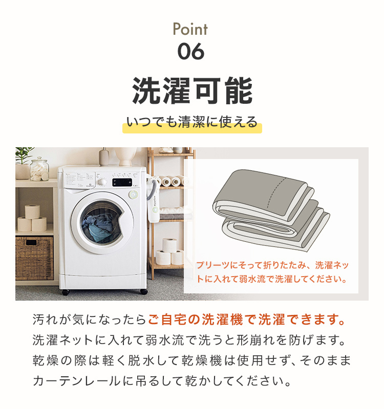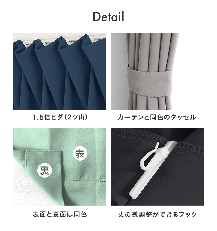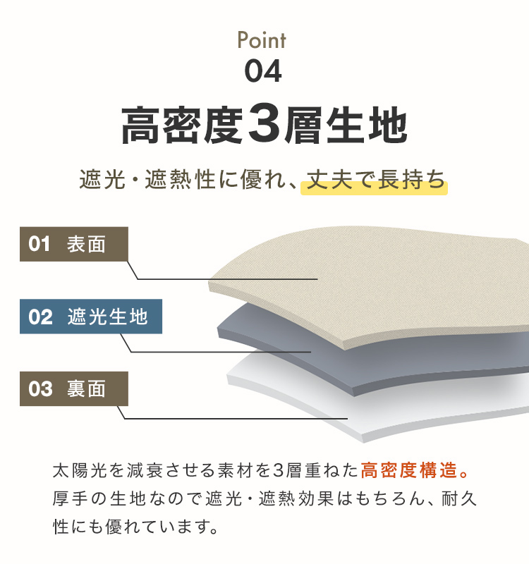 しっかりとした厚手の生地で、高密度なため遮光性に優れます。