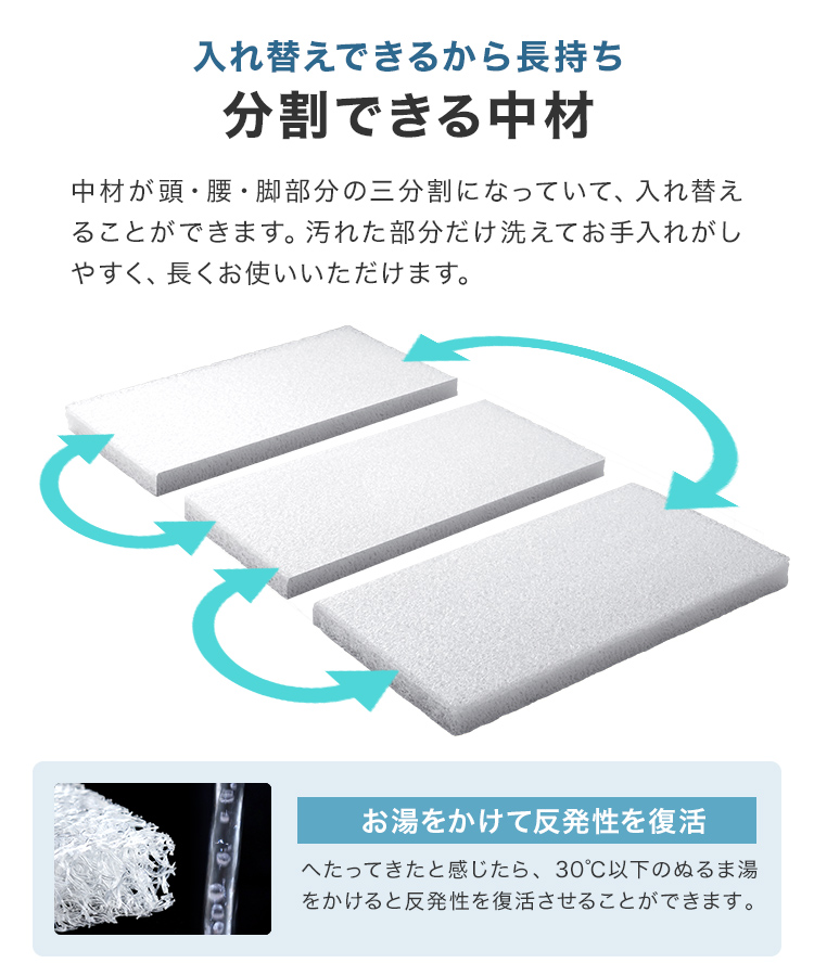 カバーはもちろん、中材まで洗えていつでも清潔に使用できます。