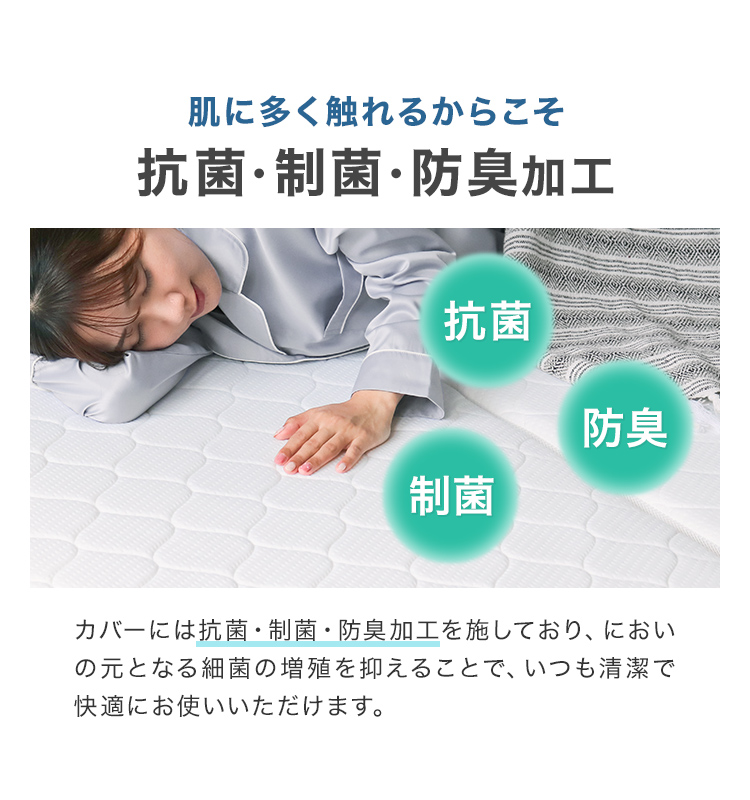 通気性に優れており、マットレス内部に湿気がこもりにくい構造です。