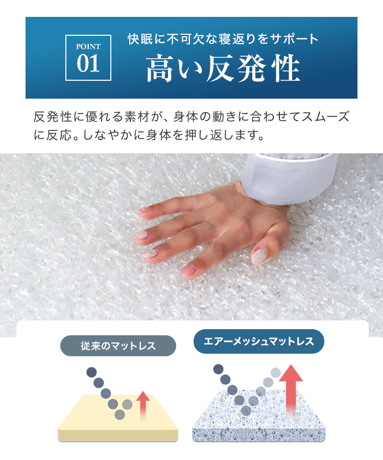 極厚10cmのエアーメッシュの高い反発性で寝返りをサポート!
