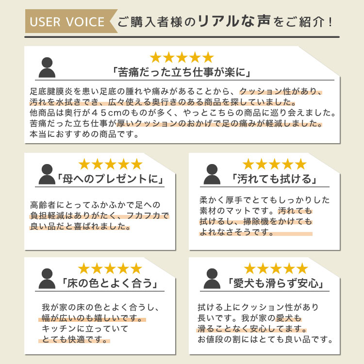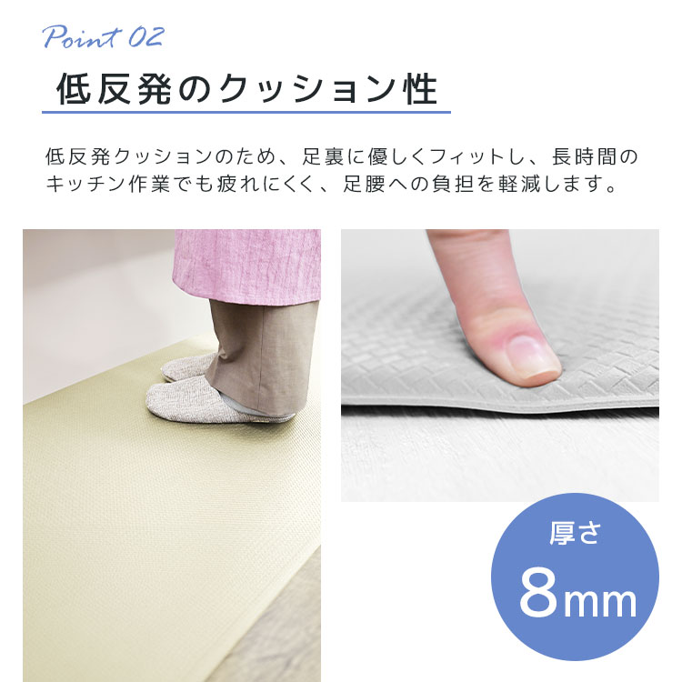 長時間のキッチン作業でも疲れにくく、足腰への負担を軽減します!
