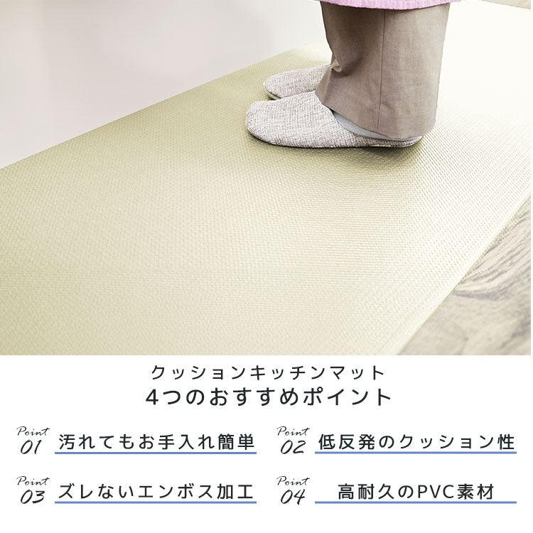 そんなお悩みには、お洗濯不要!汚れやキズから床を守る、クッションキッチンマットがオススメです。