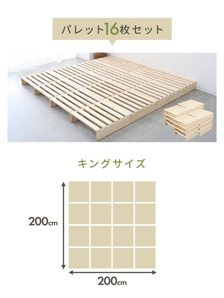 パレットベッド 16枚セット(50×50×13cm)ダブル キング 北欧天然木 すのこベッド ベッドフレーム ロータイプ【送料無料】についてつぶやく