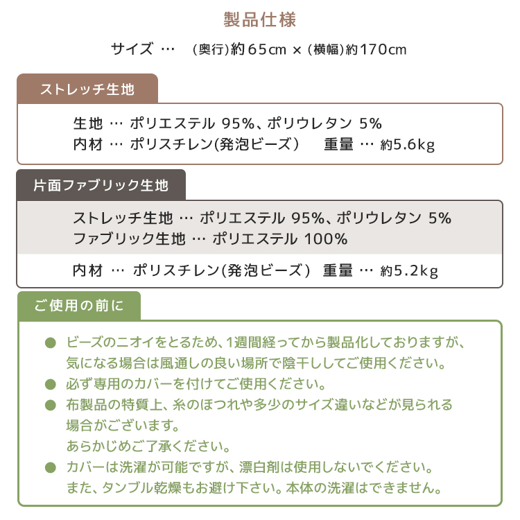 ・ビーズクッション本体は洗えません。必ず専用カバーを付けてご使用ください。