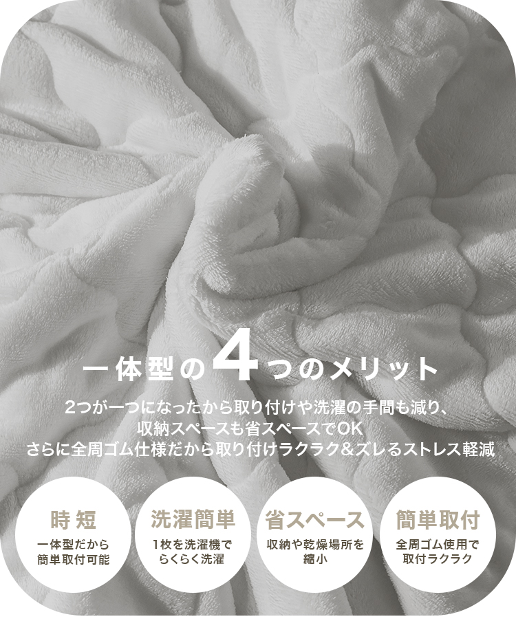 一体型だから取り付けや洗濯の手間も減り時短に!
