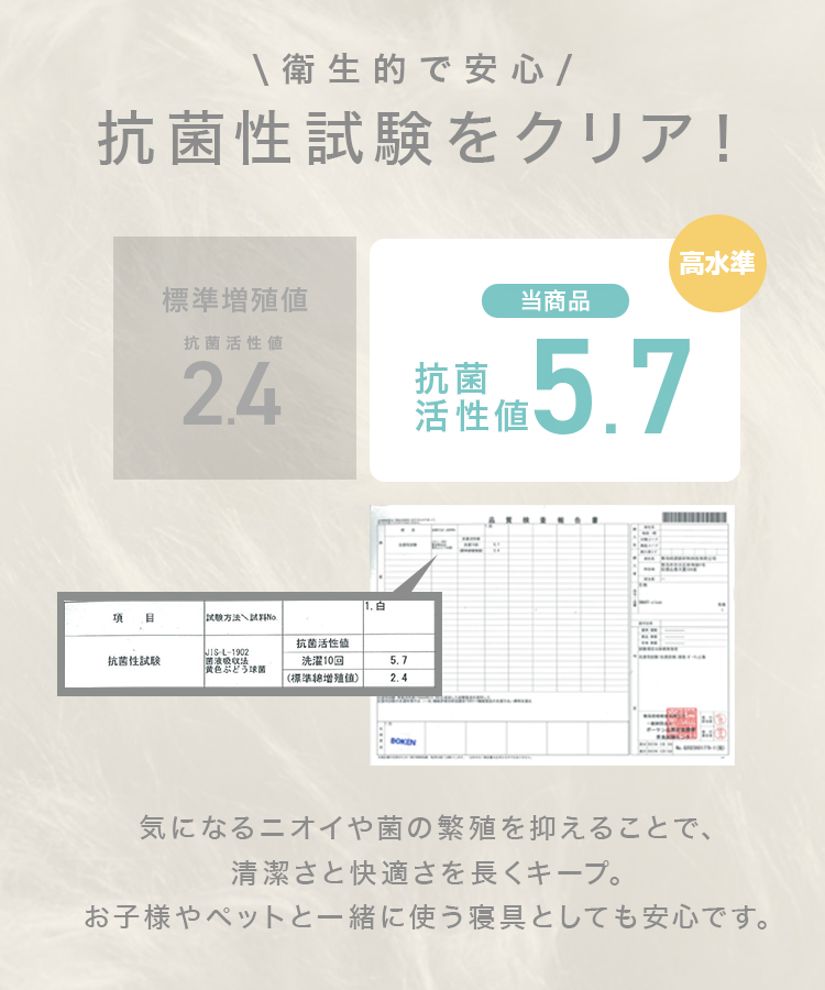 お子様やペットと一緒に使う寝具としても安心してご使用いただけるように安全な品質にこだわりました。