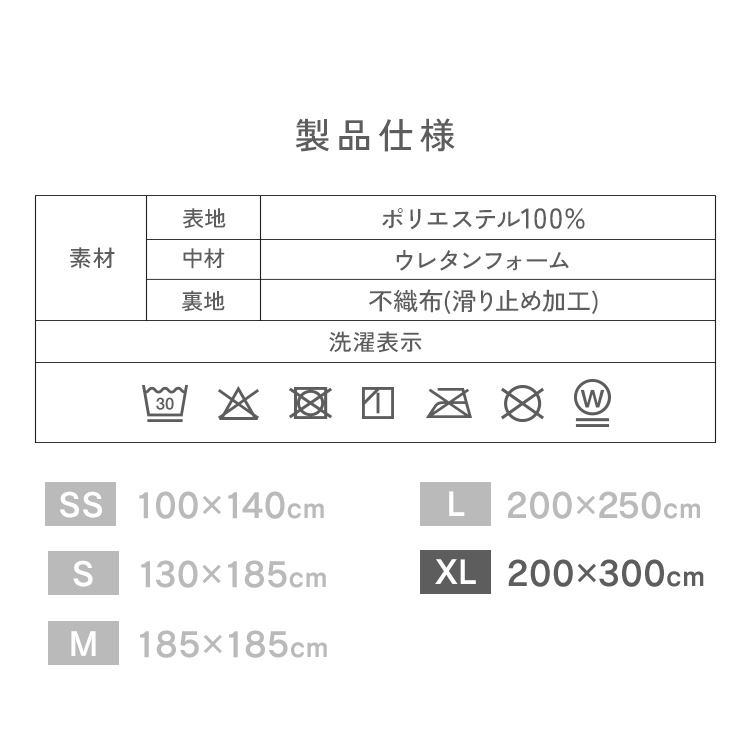 毛足が短く表面がサラサラなので、簡単にお掃除でき、洗濯機での丸洗いもできるのでいつでも清潔にご使用いただけます。