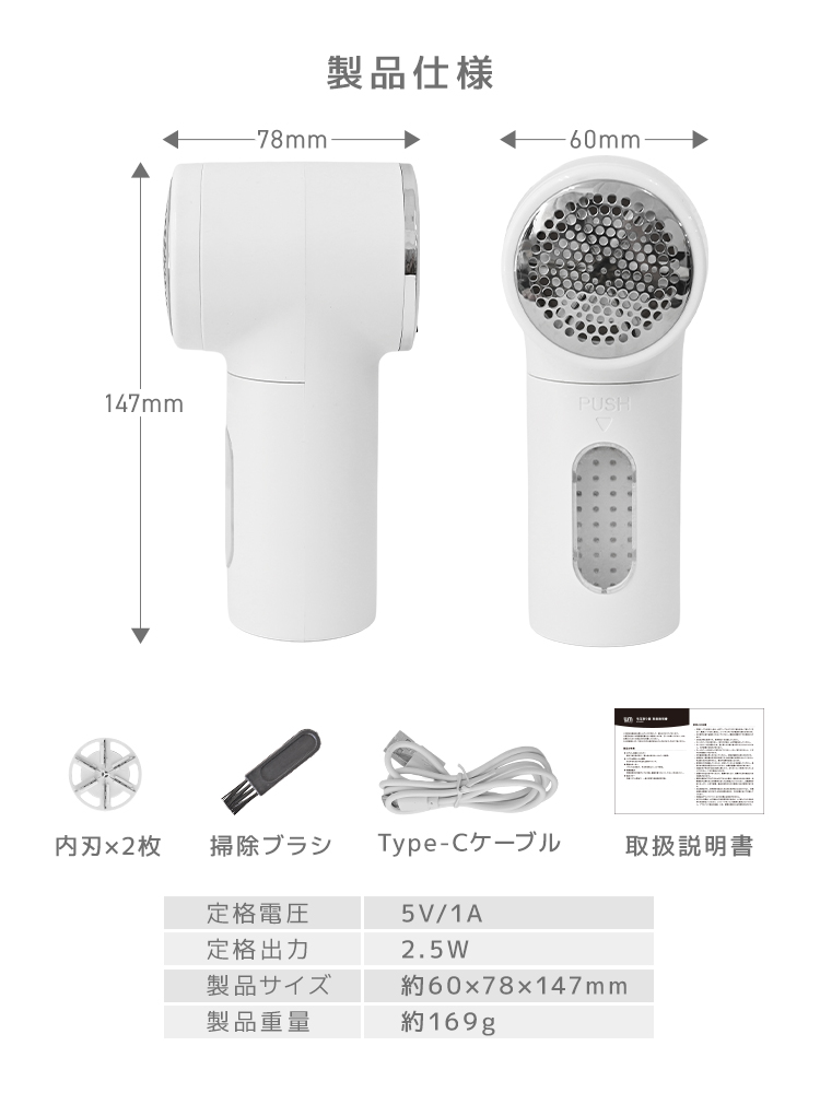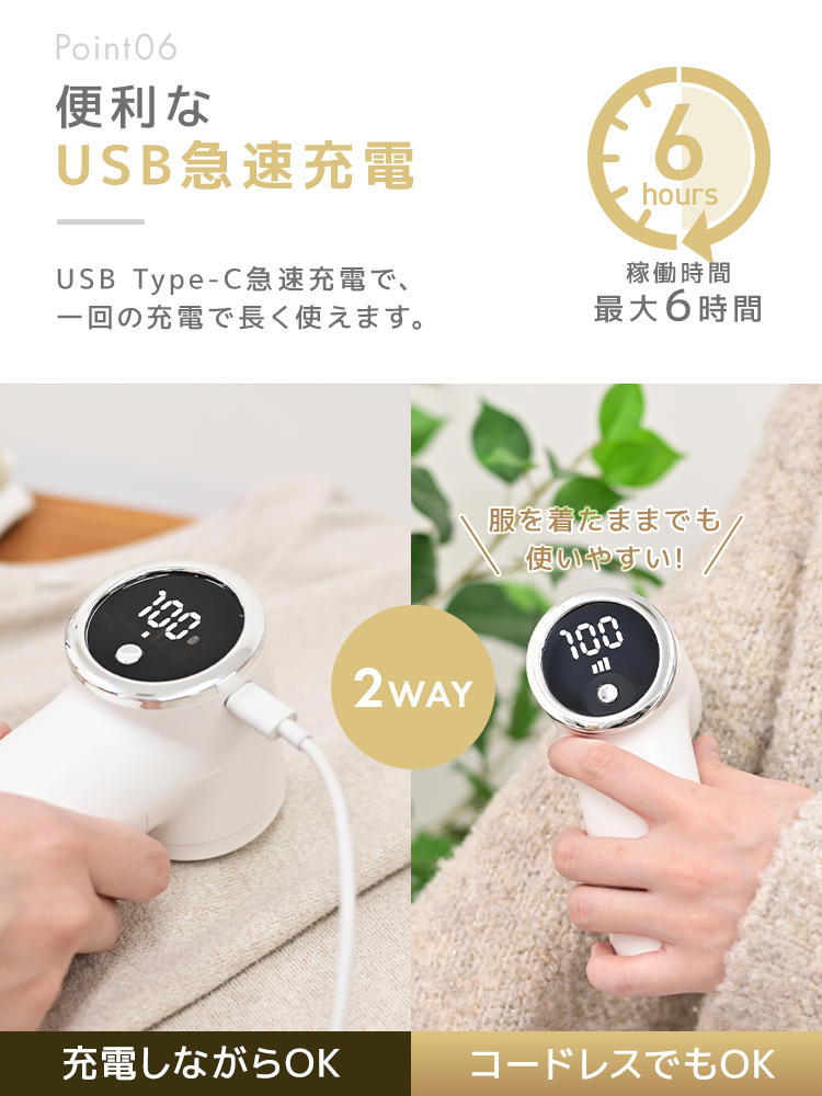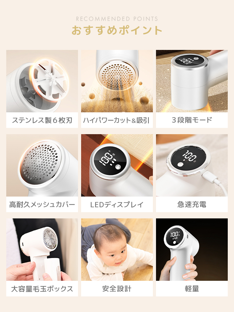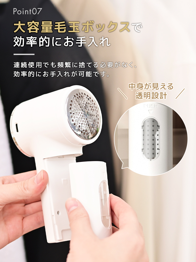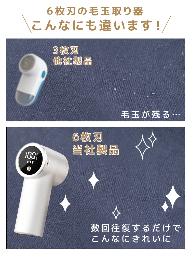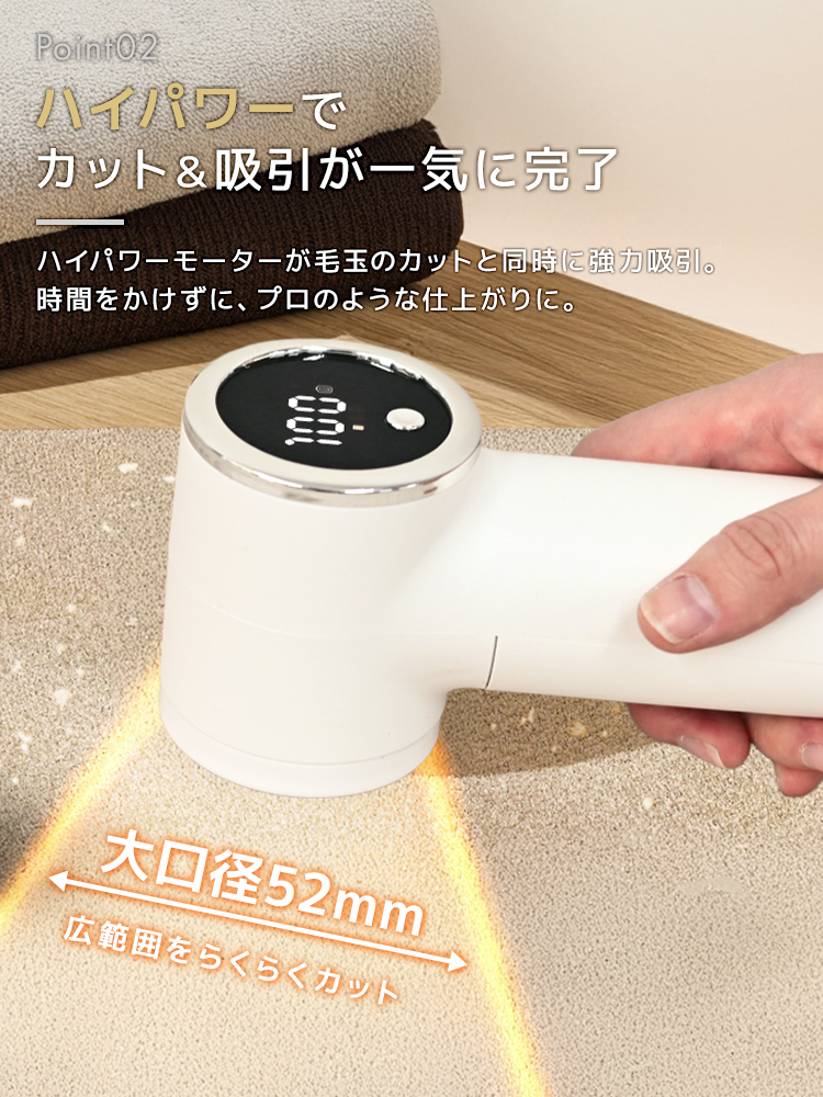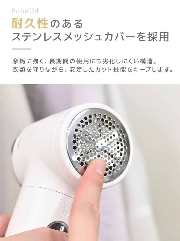高性能ステンレス刃とハイパワー設計で、セーター・コート・ソファなど幅広い素材に対応。