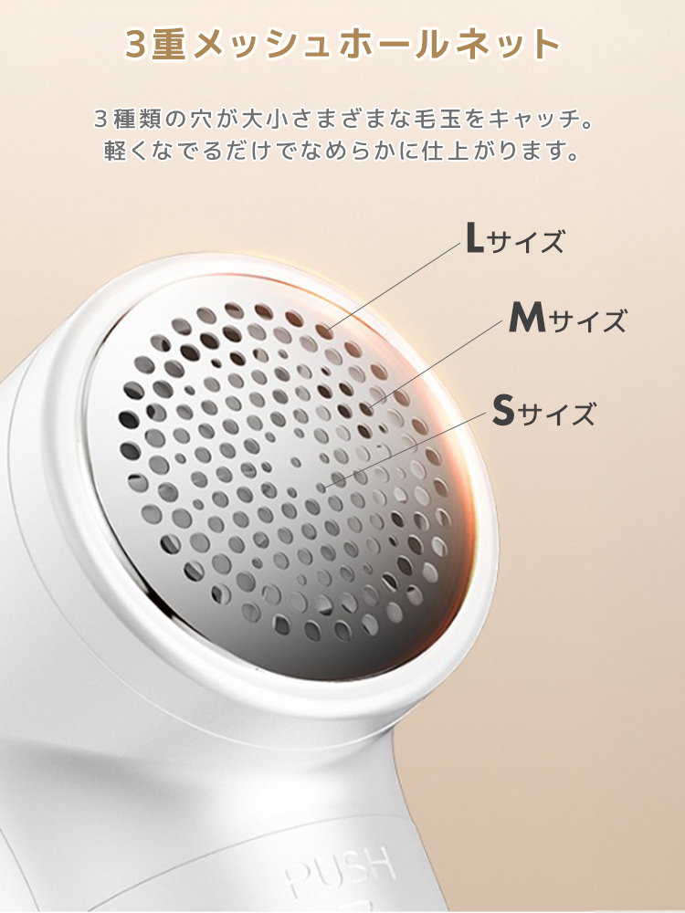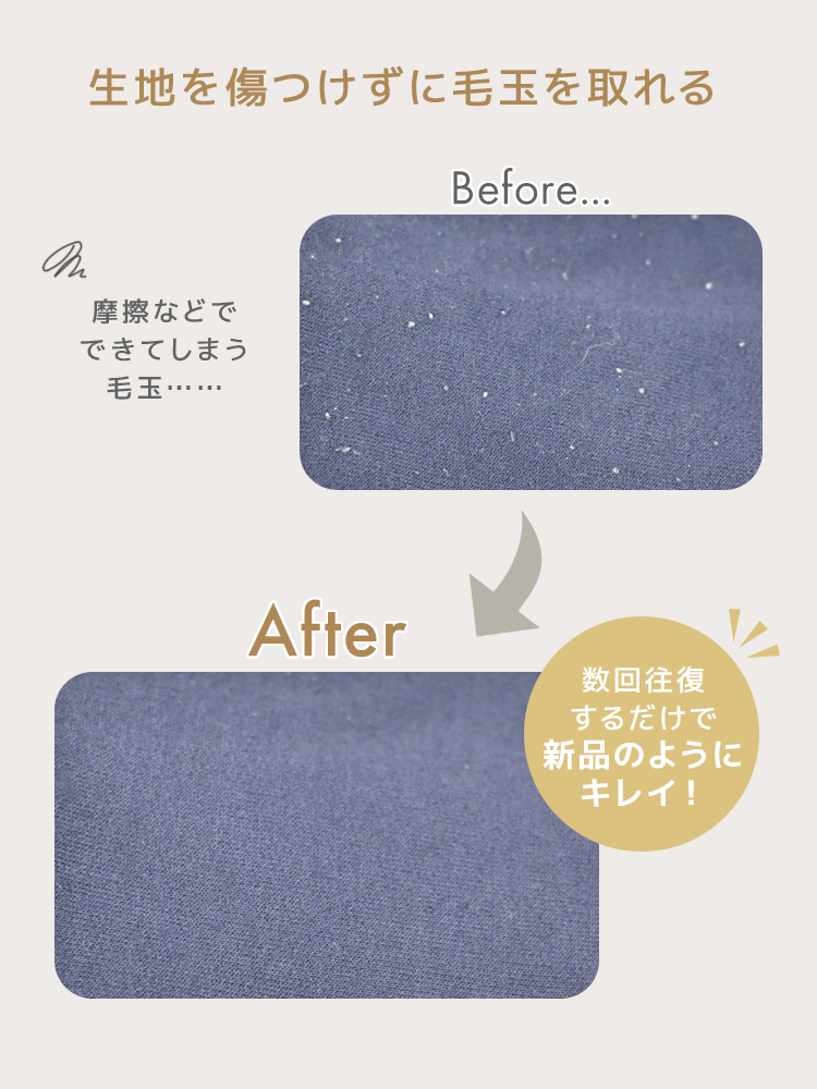 大小の毛玉をしっかり捕捉し、生地へのダメージを軽減。