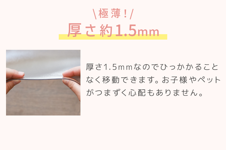 角丸設計でめくれにくく、ロボット掃除機も問題なく使用できます。