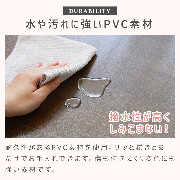撥水性のあるPVC素材を使用してるので、汚れやシミに強く、