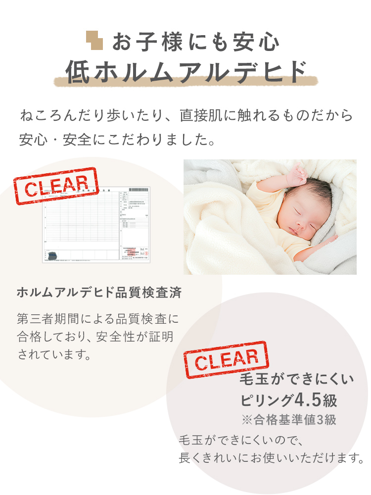 ホルムアルデヒド検査済みで安全性を確認済み。