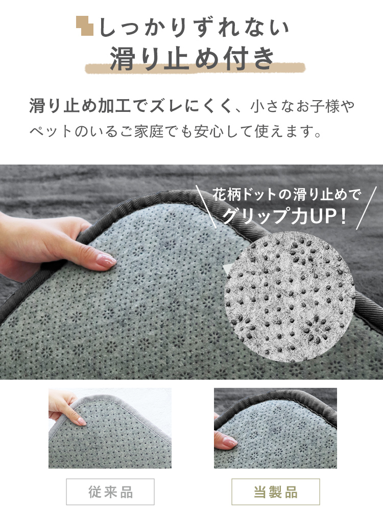 裏面は滑り止め付きでズレにくく、小さなお子様やペットのいるご家庭にも安心です。