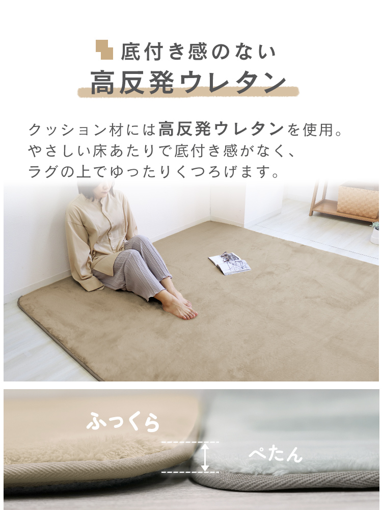 ふんわり贅沢な肌ざわりと抜群の弾力性を両立した高反発ラグマット。