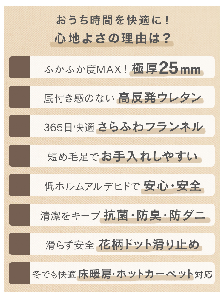 リビングや寝室、子ども部屋にもぴったりな高反発ラグです。
