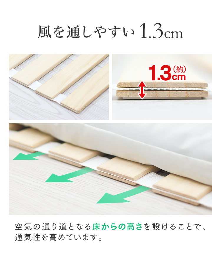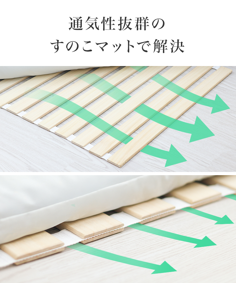 マットレスや布団の下に敷くだけで、湿気を逃がしカビ対策に効果を発揮します。