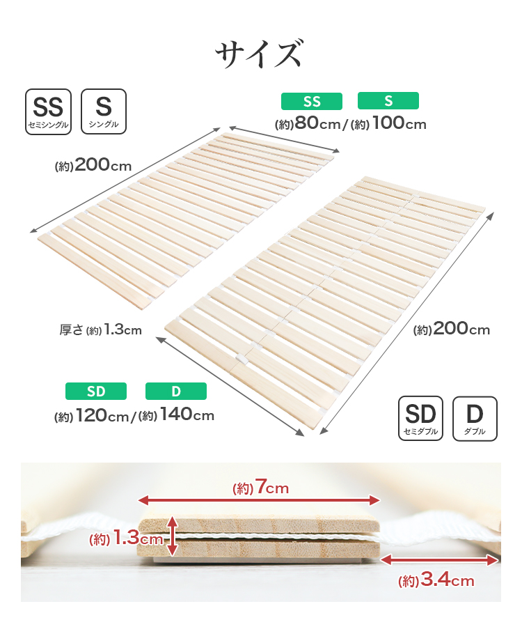セミシングル:(約)幅80×奥行き200×厚さ1.3cm