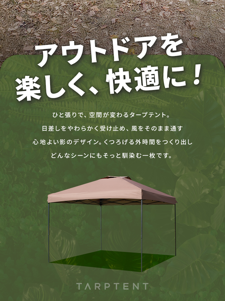 急な雨が降っても安心の撥水加工が施されており、大人数のバーベキューやスポーツ観戦、アウトドア、休憩所にぴったり。
