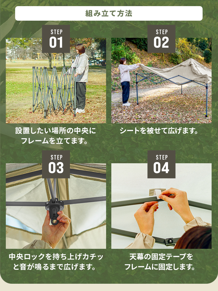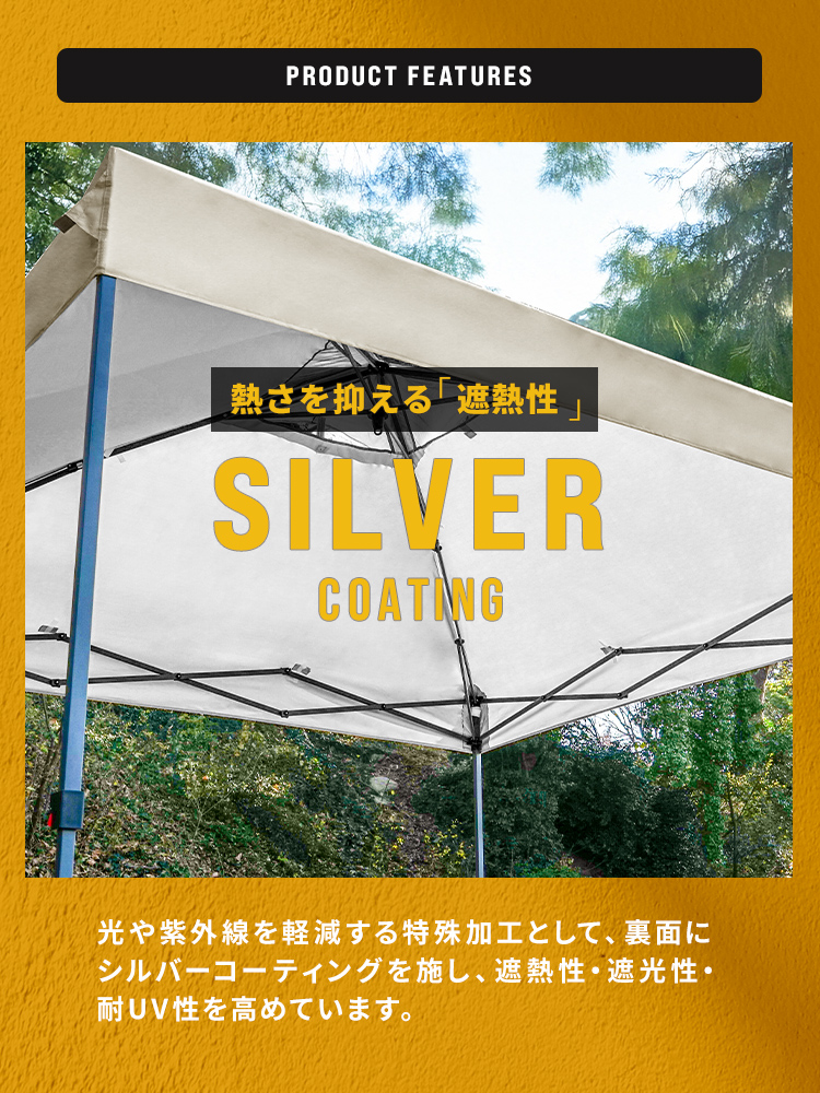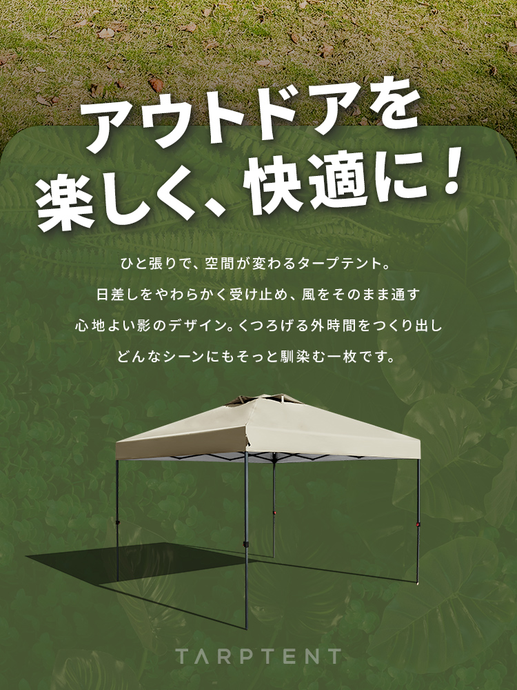 選べる3サイズ展開のワンプッシュタープテントです。